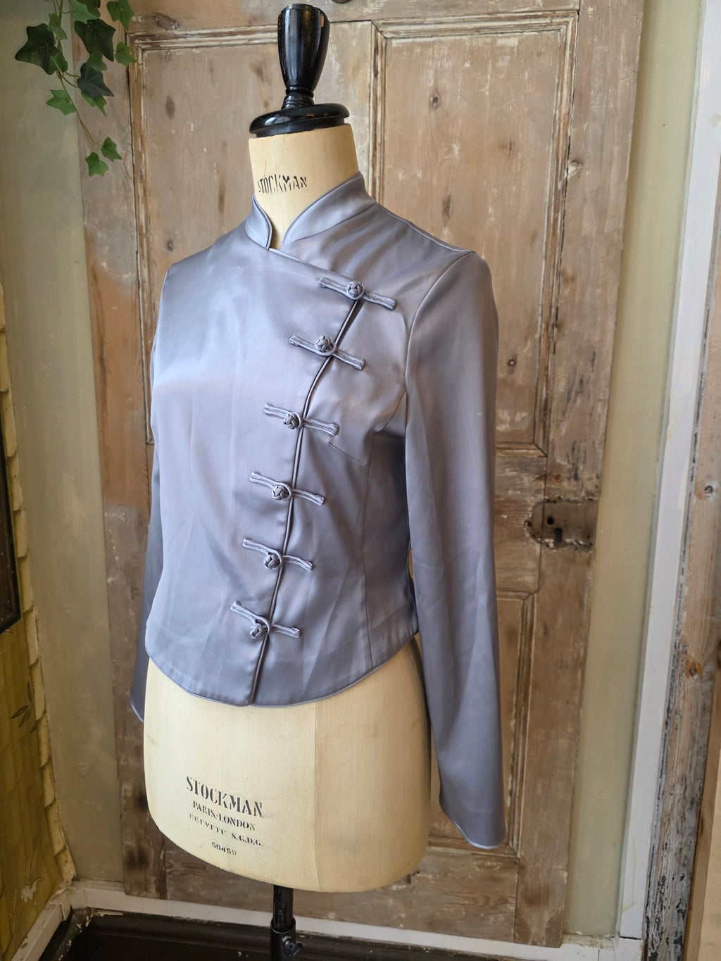 Vintage 90s Silver Oriental Style Satin Jacket by Y2K Collection – UK 10/12