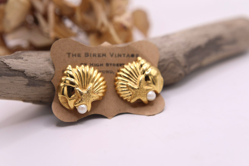 Vintage 1980s mermaid starfish shell Clip on earrings costume jewellery