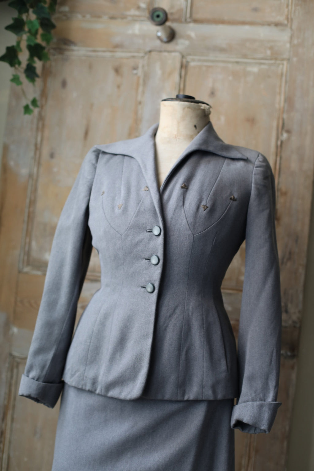 Vintage late 1940s Eastex original two piece wool ladies suit. Grey wool.