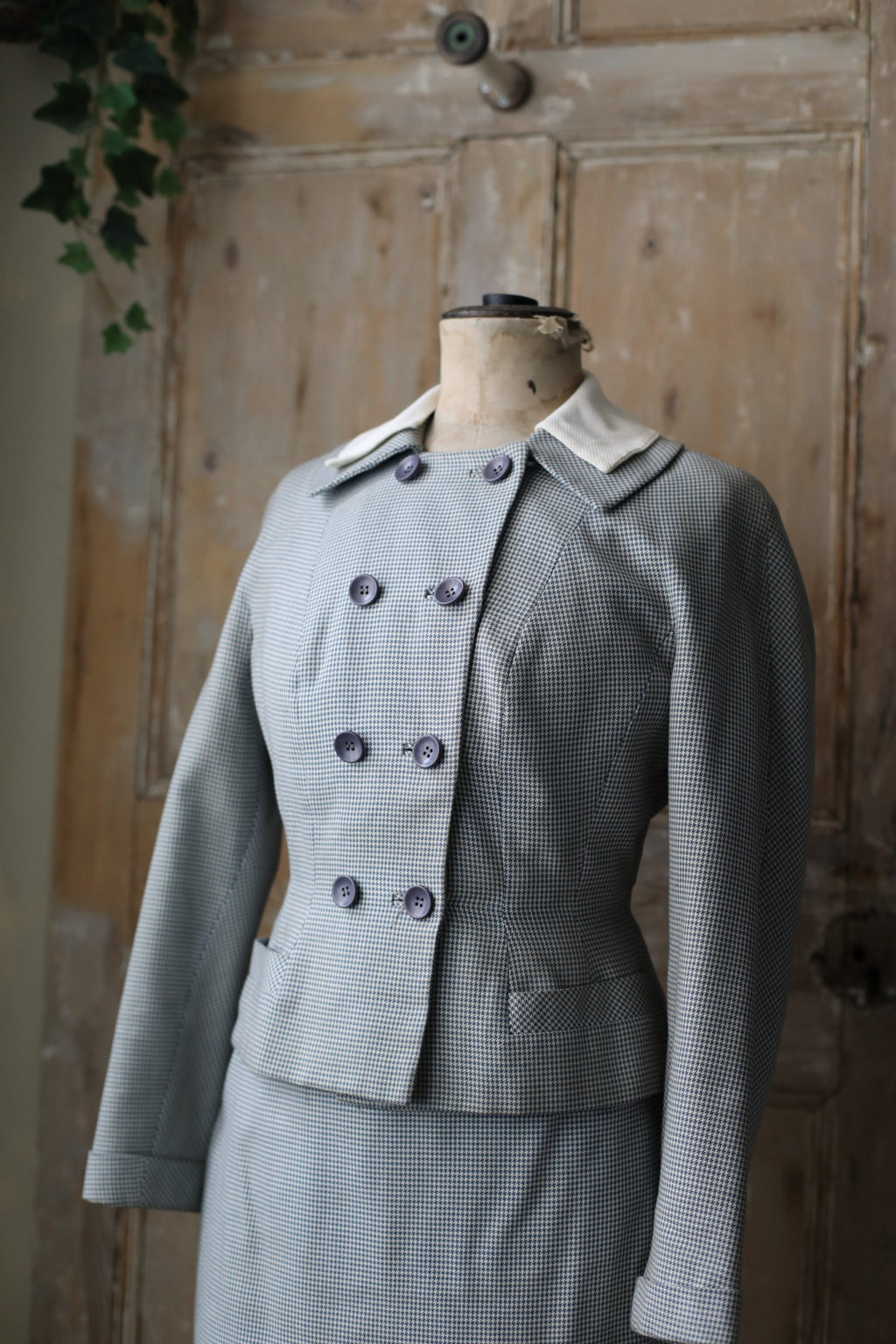 Vintage late 1940s Rensoir original two piece wool ladies suit. Dogtooth