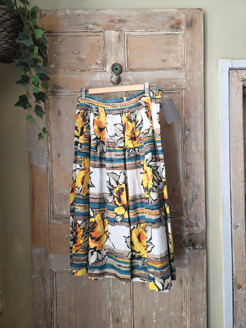 Vintage Late 1940s Yellow Rose Skirt – Make Do and Mend – Bold Floral – UK12