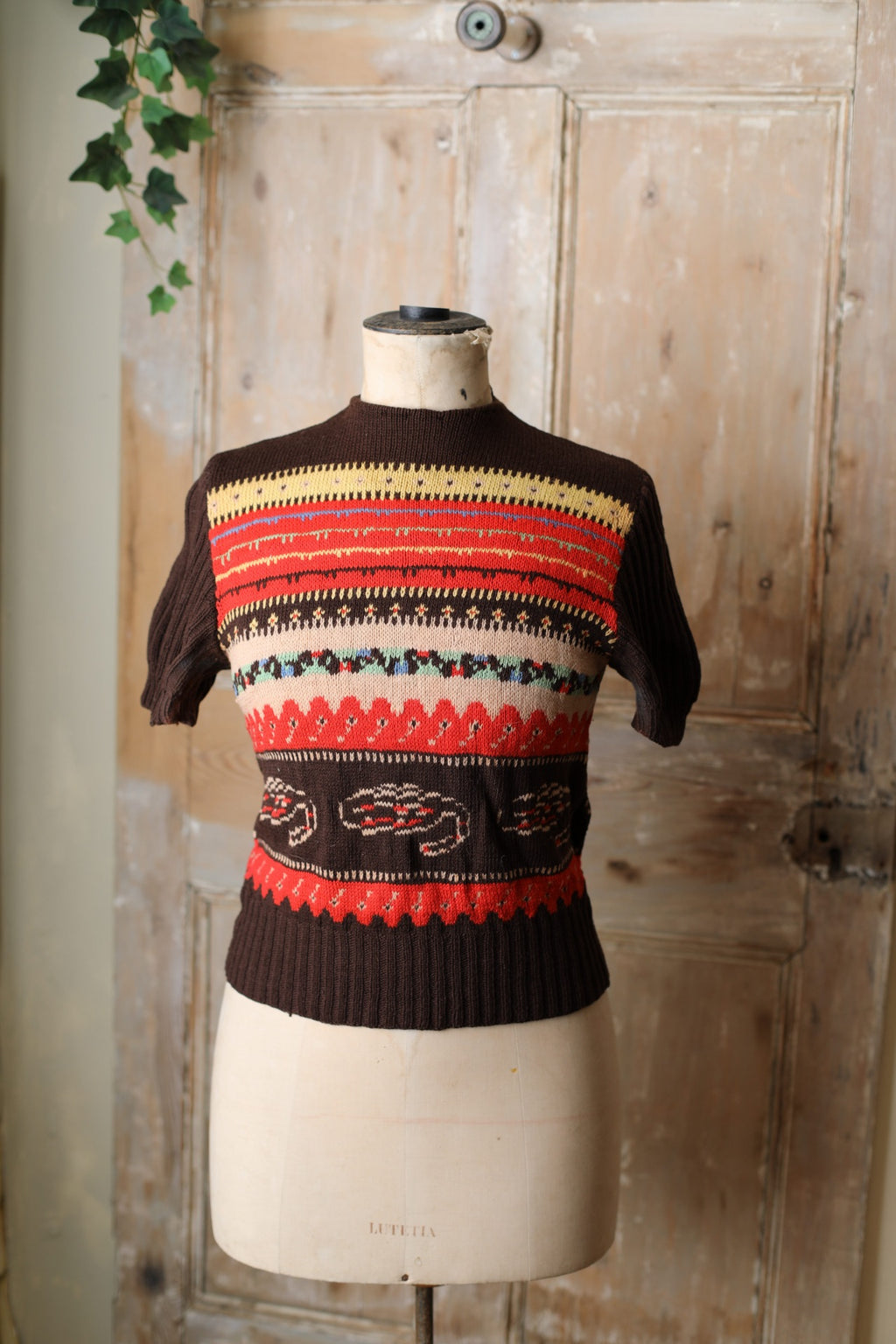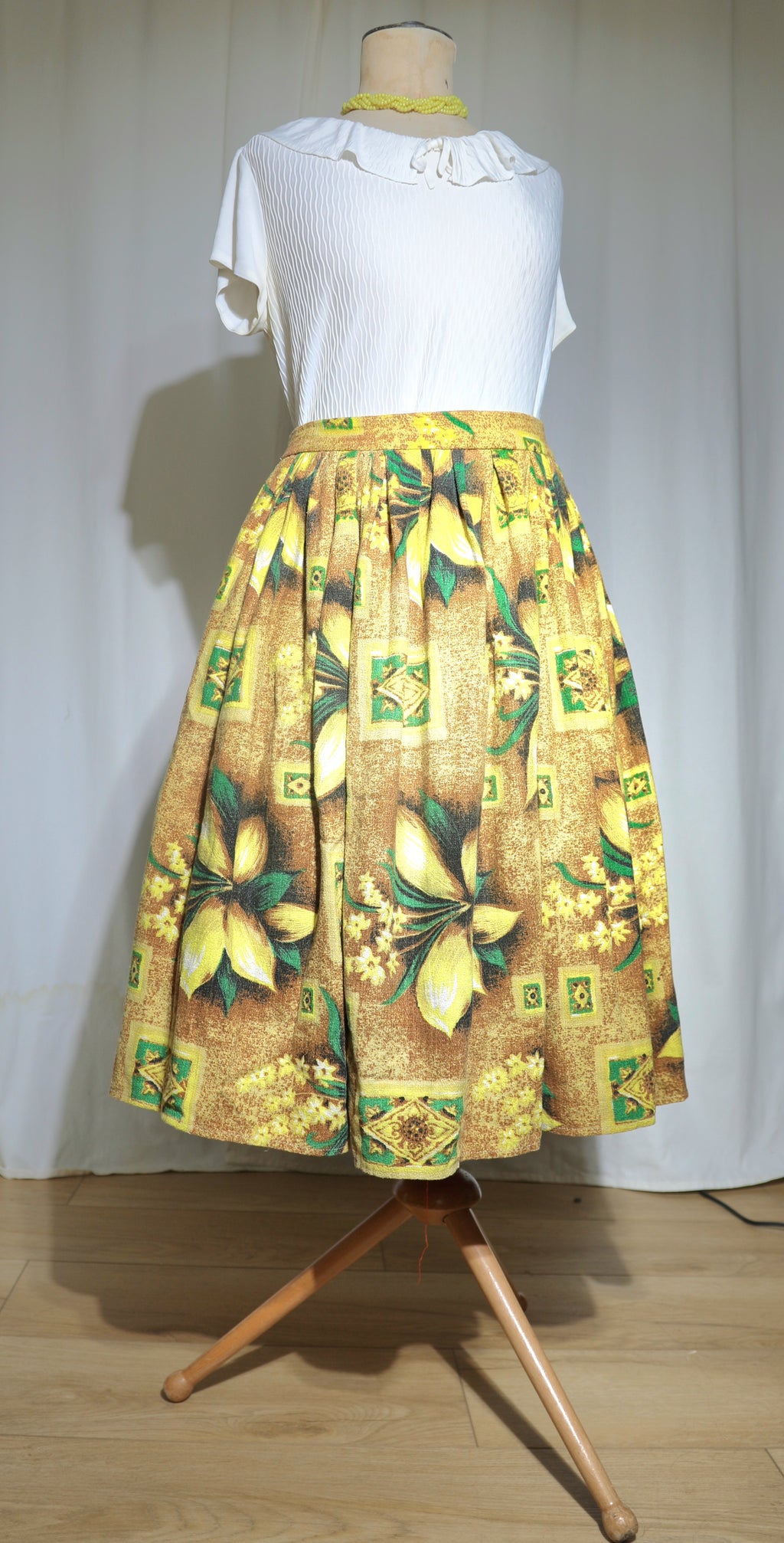 Handmade Vintage Fabric Skirt Tiki Yellow Sz 12 W30