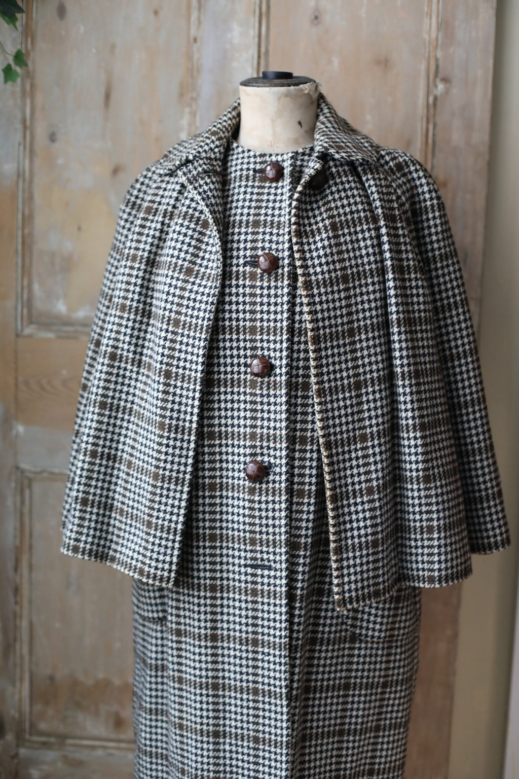 Rare vintage 1960s Strathtay wool houndstooth cape coat
