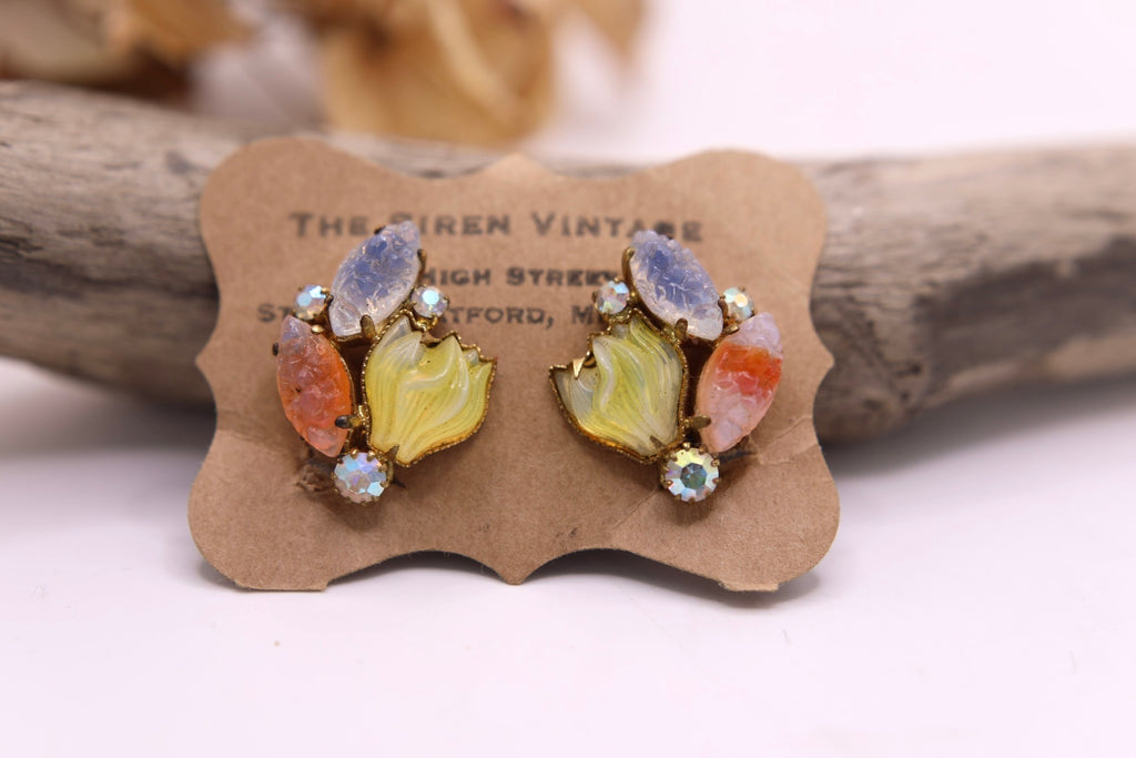 Vintage 1950s Molded glass gold tone clip on earrings costume jewellery