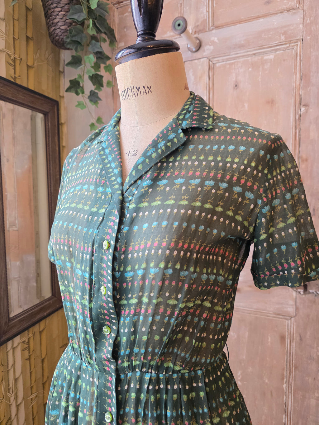 Vintage 1950s Sheer Floral Shirtwaister by Styled by Lynbrook – UK 10