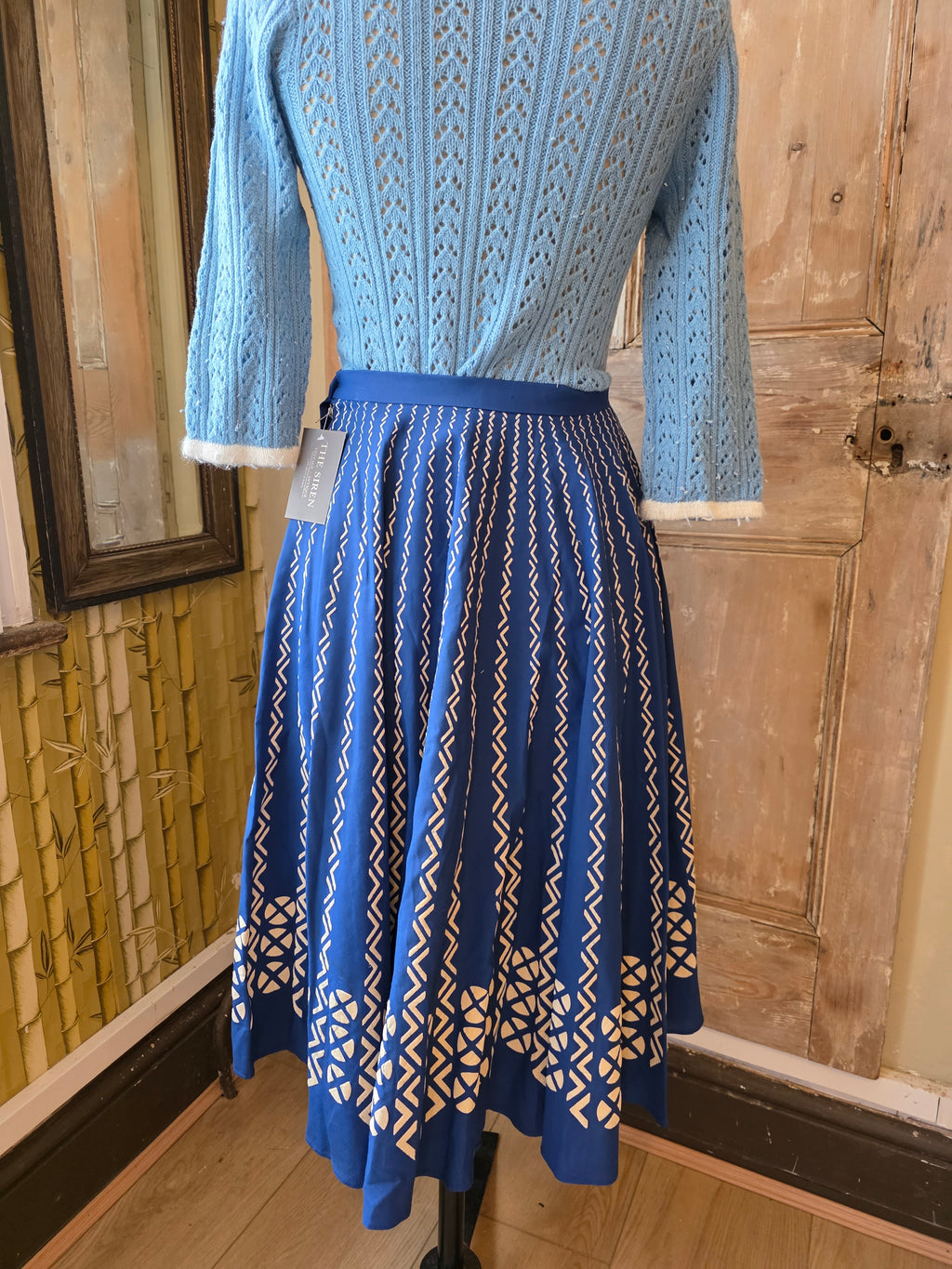 Vintage 1950s Woolfelt Novelty Skirt in Blue with Geometric Print by Provawear –