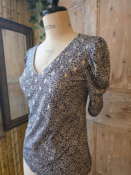 Crafted in a silky, lightweight fabric, this statement blouse features a flattering tailored cut, a deep V-neckline, and a bold all-over leopard print, the ultimate in early-2000s glamour. Perfect for styling with leather trousers for a night out, or with jeans for an effortlessly chic day look.